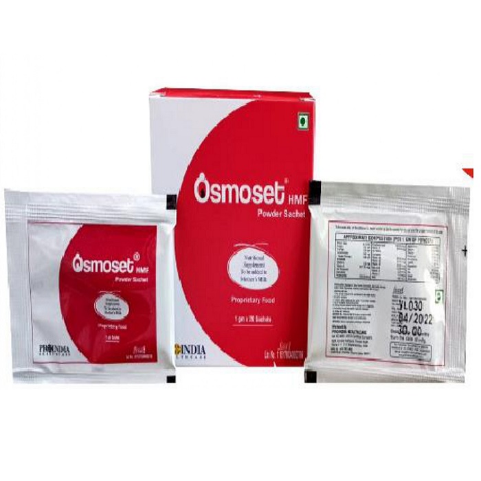 Proindia Osmoset HMF Sachet contains whey protein and milk solids as a protein source that supports faster weight gain hence best suited for low birth weight babies. It is effective to increase body weight and reduce the further complications.
